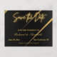 This wedding save the date postcard features a black background with gold streaks for that chic sleek modern look.