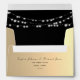 Simple, elegant, modern classy faux gold and black wedding 5x7 envelope with string lights and return address.