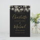 Black and gold signature script wedding program featuring pretty string lights and chic modern typography. This stylish wedding program can be personalized with your special wedding day information. Designed by Thisisnotme©