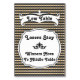 Wonderful black and gold stripped plaid Bunco table card. This is the low table card of a set of three. Text can be changed to fit your own Bunco table transition style. Bunco or Bunko table cards are an easy way for your players to identify which table to transition to. My Bunco group finds the Bunco table cards that I've created easy to read, well made and helps the hostess with table card set up. We keep a set of different cards in our shared Bunco supplies box. Have fun playing Bunco.