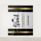 Modern black and gold geometric stripes on a white background and black graduate cap