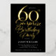 Celebrate a milestone birthday in style with our Black and Gold Surprise 60th Birthday Party Invitation, featuring real gold foil for a touch of luxury and elegance. The sleek black background sets the stage for a sophisticated design, while the real gold foil accents elevate the invitation with a glamourous shine that captures attention and exudes class.