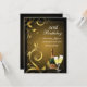 Elegant personalized birthday party invitation for 50th or any year. Beautiful and festive birthday invites feature black and Gold design with elegant swirling pattern and two glasses of bubbly champagne with green tinted bottle of champagne to celebrate the guest of honour's big day.
