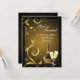 Elegant personalized birthday party invitation for 50th or any year. Beautiful and festive birthday invites feature black and Gold design with elegant swirling pattern and two glasses of bubbly champagne with green tinted bottle of champagne to celebrate the guest of honour's big day.