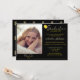 Celebrate your grad with this black and gold toned photo graduation invitation with balloons and graduation cap on the back.