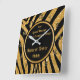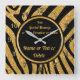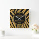 Black and Gold, Zebra Print Clock, Personalized Square Wall Clock