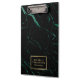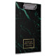 Your name or business name is elegantly displayed over a velvety black and green marble background for a very unique and luxurious aesthetic on this personalized clipboard. The organic marble pattern is recreated in unconventional colours to bring intrigue and mystery to the design. A stylish creation created by 1201AM © 1201AM Design Studio | www.1201am.com