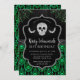 Black and Green Skull and Cobwebs 21st Birthday Invitation