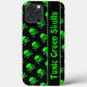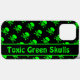 Black phone case with a green skull and crossbones pattern. Editable text field for easy customization with your name or message.