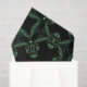 Seamless decorative pattern featuring green ornaments on a black background.