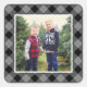 Black and Grey Buffalo Plaid Holiday Photo Square Sticker