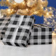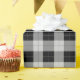 This roll of wrapping paper features an almost gingham style black and grey chequered picnic plaid.