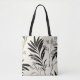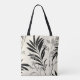 Chic ivory coloured carry all tote bag, with graphic artwork of black and grey fern fronds. A two letter monogram, on the bottom right side of the bag is ready to personalize. What a great gift idea for her.