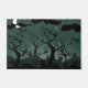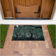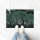 Black and grey haunted graveyard Halloween doormat. A haunted cemetery in black and grey with gravestones, spooky trees, a witch, an owl, bats and your text "Happy Halloween" are the elements of this cool Halloween design.