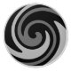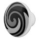 A ceramic knob with a black and grey swirl design printed on it.