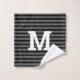 Monogrammed bath towel set done in a black to grey ombre striped pattern. Personalize the large white one letter monogram to suit your needs.