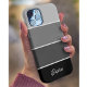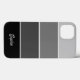 This trendy phone case features four stripes in varying ombre gradients of black, charcoal, and grey, and your name in script typography for a modern look.
