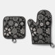 Black And Grey Retro Floral Art Seamless Pattern Oven Mitt & Pot Holder Set