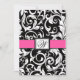 Hot Pink & Black Damask Monogram Wedding RSVP Cards - For Buffet Style Receptions