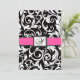Hot Pink & Black Damask Monogram Save the Date Wedding Postcards