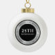 Black and metallic silver 25th wedding Anniversary Ceramic Ball Christmas Ornament