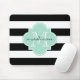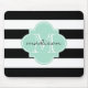 Add some style to your work or home office with this chic black and white stripes with a custom personalized mint green quatrefoil monogram mouse pad. To change the fonts or font colours, click the "Customize It" button below the product image.