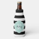 Black and Mint Preppy Stripes Monogram Bottle Cooler