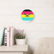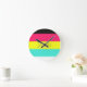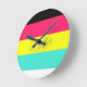 Black and Neon Colour Block Stripe Monogram Name Round Clock