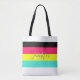 Black and Neon Colour Block Stripe Monogram Name Tote Bag