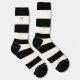 A classic pattern of black and off-white rugby stripes in referree style make a fun addition to your wardrobe. Personaize the monogram on the right sock with your monogram initial.