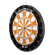 Black and orange dart board with two custom text areas. Choose "customize more" option if you want to change colours.