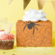 Use this Halloween pattern paper for your crafts or wrap your gifts. This orange paper features a black spider and its web.