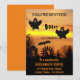 Black and orange Halloween invitation that features spooky and scary, black silhouettes of ghosts, bats and more. Edit information on invitation and replace with your own info.