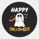 Black and Orange with Ghost Happy Halloween Classic Round Sticker
