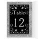 This Black and Pewter Floral reception table card with PRINTED pewter and floral design matches the invitation and other items shown below. It is reversible so you can turn the card inside out to have the table number visible from front and back, but it will have a matte finish on it. The front and back are both glossy if the card is not turned inside out, but there is not a design on the back side. **You MUST change the number 12 to each of the table numbers you need, add it to your cart, and then return and repeat the process until you have all the individually numbered cards that you need in your cart. ALSO, if you change fonts, or the size of the font, some of the design and/or text may get cut-off. Everything will print as you see it on your monitor. I will not see changes you make, and Zazzle will NOT correct anything (typos, mis-alignment etc.). The text is all customizable. You can select one of 2 sizes for the table number card. If you need help with this product, please email me BEFORE you place your order. If you require any other matching items, please email your request to niteowlstudio@gmail.com