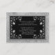 This black and silvery grey reception enclosure card matches the wedding invitation and other items shown below. If you re-size the card, or if you change fonts, or the size of the font, some of the text may get cut-off. Everything will print as you see it on your monitor. I will not see your card, and Zazzle will NOT correct anything (typos, mis-alignment etc.). The text is customizable. If you need help with this card, please email me BEFORE you place your order. If you require any other matching items, please email your request to niteowlstudio@gmail.com