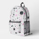 Introducing the enchanting backpack from the Modern Celestial Moon Sun and Stars Collection, a celestial-inspired accessory that blends style and functionality. This backpack features a captivating design in black and pink, with intricate patterns of stars, suns, and moons against a pristine white background.