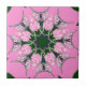 This artwork features a central, symmetrical, medallion-like design, incorporating floral and geometric elements that radiate outwards. The composition is balanced and visually engaging, drawing the eye to the intricate pattern. The background is a solid, bright pink, making the design pop.