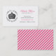Elegant business card design with a cute chic girly vintage illustration of a crown in a wreath crest of leaves. Customize with your personal business contact information for an adorable and unique business card design! Back has coordinating diagonal stripe pattern or you can use the space to add more text if needed. Click the Customize It button to change fonts and colours and further personalize the design.