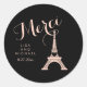 Black and Pink Paris Eiffel Tower Wedding Merci Classic Round Sticker