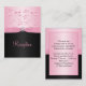 ****PLEASE NOTE that the ribbon and jewels are works of art and are not real. This pink and black floral reception card matches the invitation and other items shown below.