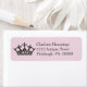 Pretty girly return address label done in a pale pink, with graphics of a black and pink crown, on the left. Personalize the black text with your information.