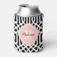 Cute trendy monogrammed can or bottle cooler with a preppy trellis pattern. Personalize it with a custom monogram or other text in a chic quatrefoil frame. Click Customize It to change text and fonts to create a unique one of a kind gift for your bridesmaids and wedding party! Contact me before ordering to customize patterns or design to coordinate with any wedding colours.