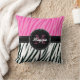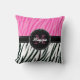 Black and Pink Zebra Print Custom Monogram girly Throw Pillow