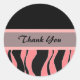 Black and Pink Zebra Print Thank You Classic Round Sticker