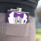 A perfect flask for a perfect wedding day! Purchase a personalized "Black and Purple Pin Striped Tuxedo Flask" for each groomsman in your wedding! A wonderful way to say thank you to your groomsmen or best man! Don't forget one for the groom! A black tuxedo version is available! This grey and black pin stripped tuxedo- has white lapels, a black bow tie and rosebud boutonniere. Very classy hip flask! To see more great products-Please visit my store "The Hungarican Princess" at www.zazzle.com/hungaricanprincess*.