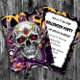 Personalized Halloween Party Invitation. Black and purple sugar skull Halloween postcard invitations.