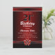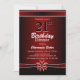 A red and black 21st birthday dinner party invitation featuring white text and a red and white ribbon and bow. Replace the details on this invitation with your own to create the perfect birthday party invitation for your event.