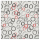 This striking pattern features a lively mix of black and red circles in varying sizes, overlapping and scattered across a crisp white background. The combination of bold solid-lined rings with sketch-style loops creates a sense of movement and energy, while the contrasting red accents add a dramatic pop of colour. The abstract design blends modern minimalism with playful geometry, making it a visually captivating choice for those who love dynamic and artistic patterns.