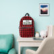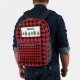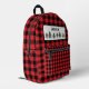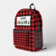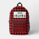 This design features a bold black and red chequered print. On the front there's a white panel that has trees. There's also an area for you to add your name.